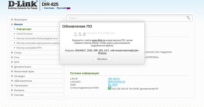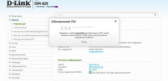 3. В верхней части страницы в разделе Система выберите Обновить ПО.