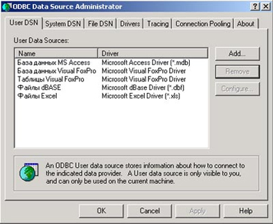 Заходим вот сюда "Control Panel" ---> Administrative Tools ---> Data Sources (ODBC) ---> жмём "Add"