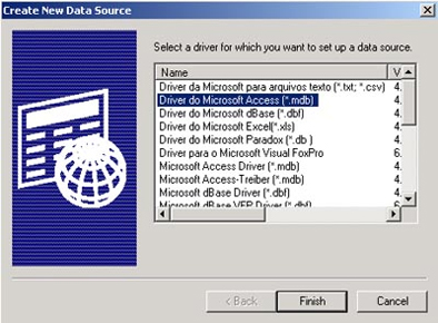 Выбираем "Driver do Microsoft Access (*.mdb)" ---> жмём "Finish"