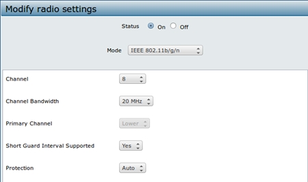 Обратите внимание, что канал (channel) и ширина полосы (channel bandwidth) должны быть одинаковыми.