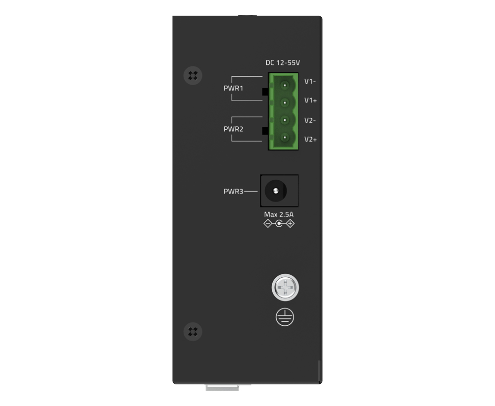DIS-100G-06 оснащен клеммным блоком для подключения до двух независимых источников питания DC1 и предоставляет пользователю возможность обеспечить бесперебойное питание в случае сбоя основного источника. На коммутаторе также предусмотрен разъем для подключения адаптера питания DC2.