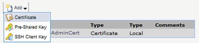 1. Pasirinkite Objects -> Authentication Objects, tada Add -> Certificate.