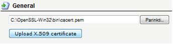3. Nurodykite kelią iki šakninio (remiantis sertifikatų sukūrimo pvz.: „cacert.pem“) sertifikato.