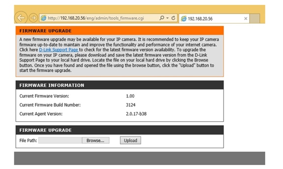 Шаг 4: Откройте Web-браузер IE и введите в адресной строке “http://IP_адрес/eng/admin/tools_firmware.cgi” (где IP_адрес - это IP-адрес, записанный на шаге 3). Пример: http://192.168.20.56/eng/admin/tools_firmware.cgi