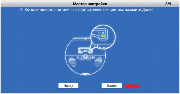 Шаг 7: Убедитесь, что индикатор питания устройства горит зеленым светом. Коснитесь значка Далее