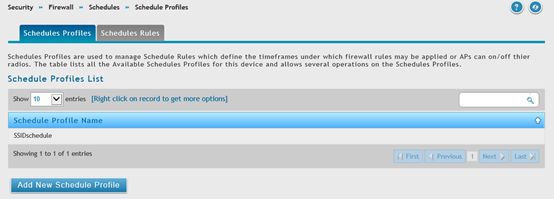 - Перейти в меню Security → Firewall → Schedules → Schedule Profiles