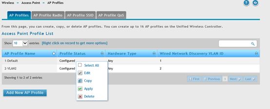 - Перейти в меню Wireless → Access Point → AP Profiles