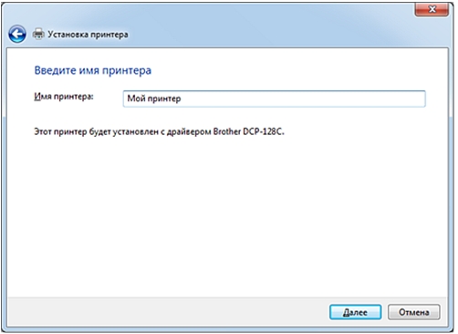Укажите имя принтера и нажмите кнопку Далее для продолжения.