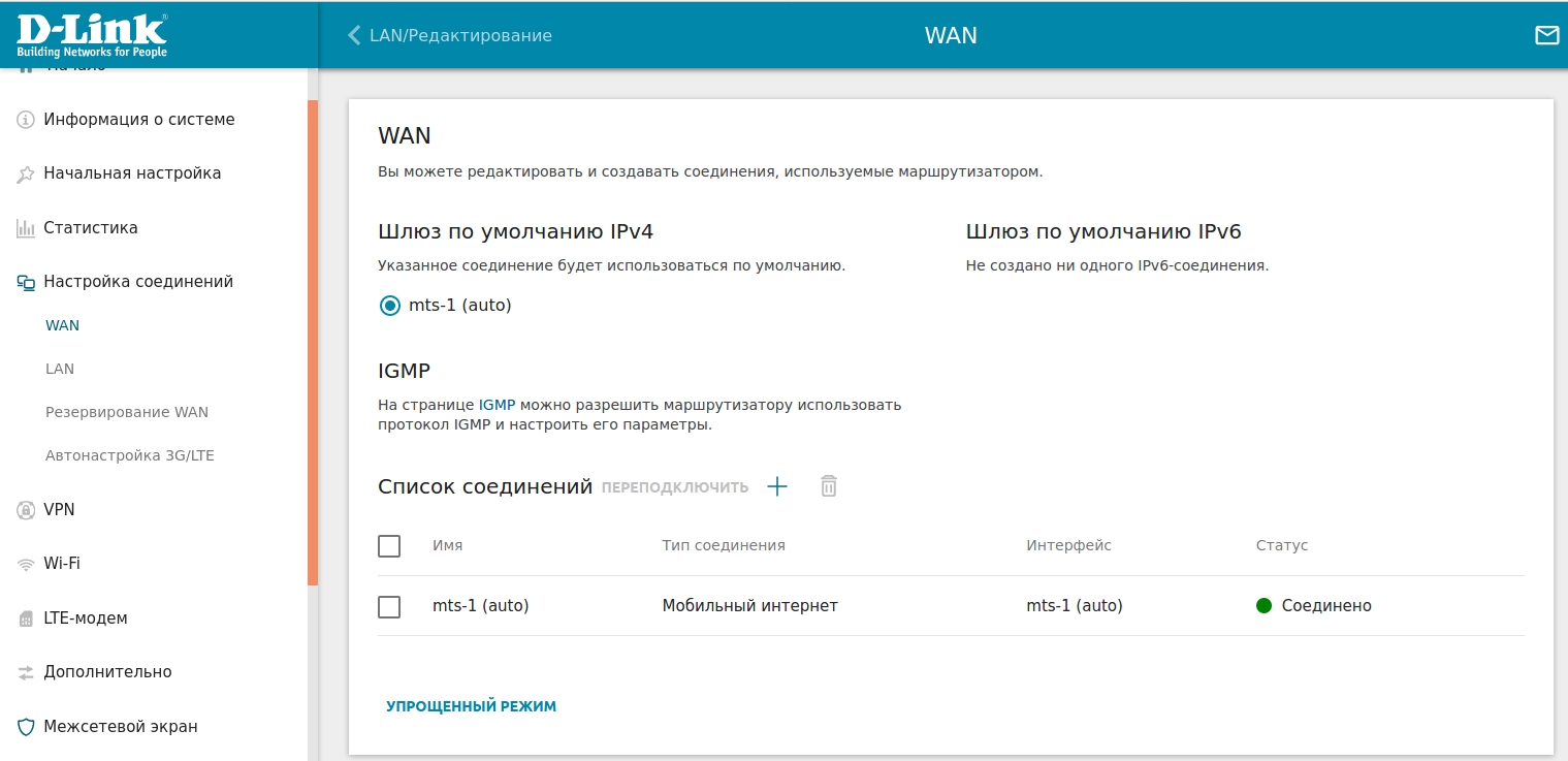 14. Настройка завершена. При подключении клиента в порт LAN 4, он получит IP-адрес по DHCP из вышестоящей сети оператора мобильной связи.