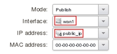 Для начала настройки необходимо создать объекты описывающие публичный дополнительный IP адрес, который будет опубликован на WAN1 интерфейсе и приватный IP адрес на который будет перенаправляться трафик.