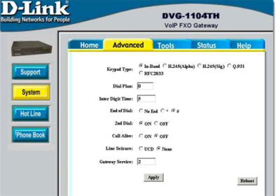 Организовать "прозрачный проброс" (hot-line) между удаленными абонентами на основе оборудования D-Link: DVG1104TH и DG104SH без использования гейткипера.