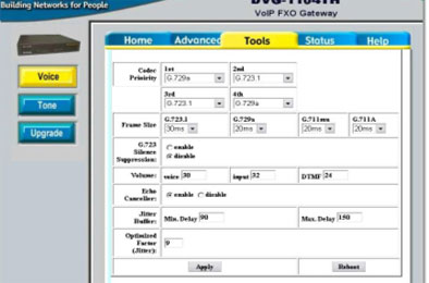 В данном примере приоритетный кодек для первого порта - G.729a, для второго G.723.1, третьего - G.723.1, четвертого - G.729а. остальные параметры остаются заданными по умолчанию.