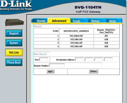 Для этого, следует зайти через WEB интерфейс на вкладку Advanced->Hot Line.
