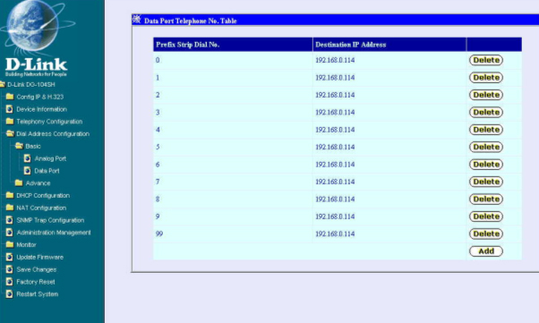 В таблице адресации следует указать, направление звонков, пришедших на тот или иной порт. Т.е. звонок, пришедший на порт 1 DVG1104TH, попадает на DG104SH (IP-192.168.0.105) на порт, с номером 201.
