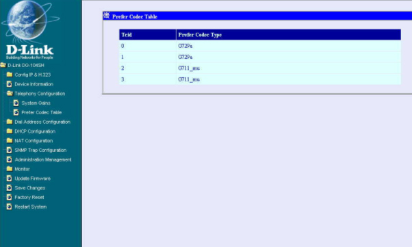 Вкладка Telephony Configuration -> Prefer Codec Table
