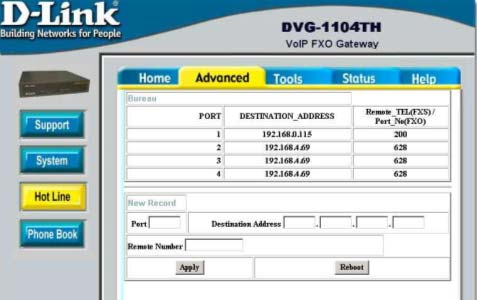 Для этого, следует зайти через WEB интерфейс на вкладку Advanced->Hot Line.