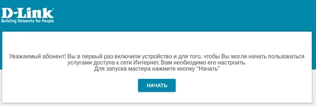- Обратитесь к Web-интерфейсу маршрутизатора. Для этого в адресной строке браузера введите 192.168.0.1 и нажмите клавишу Enter. На открывшейся странице нажмите кнопку Начать.
