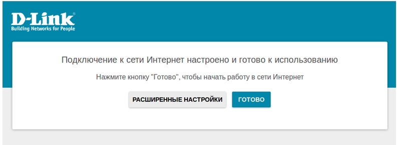 12. Далее произойдет применение настроек и проверка доступности сети Интернет. Нажмите кнопку Готово, чтобы начать работу в сети Интернет.