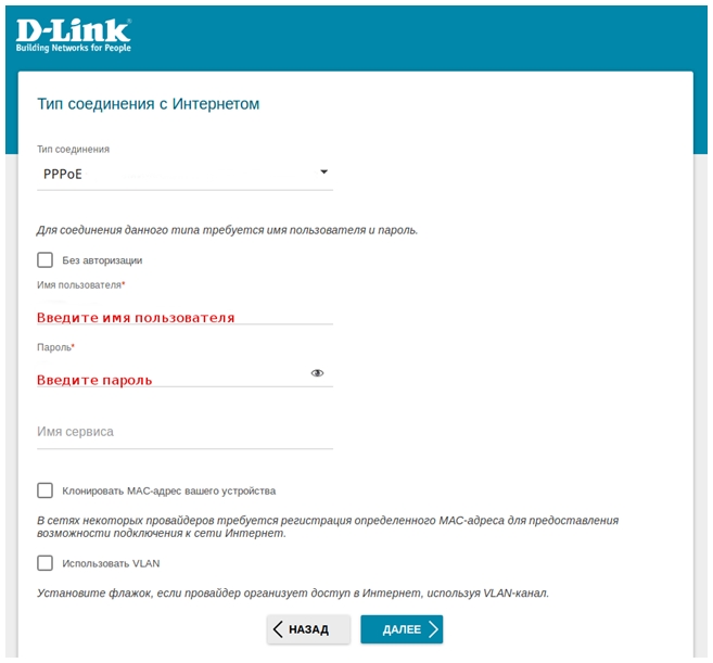 Если Ваш интернет-провайдер организует доступ в сеть интернет, используя VLAN-канал, установите флажок в поле Использовать VLAN и пропишите VLAN ID.