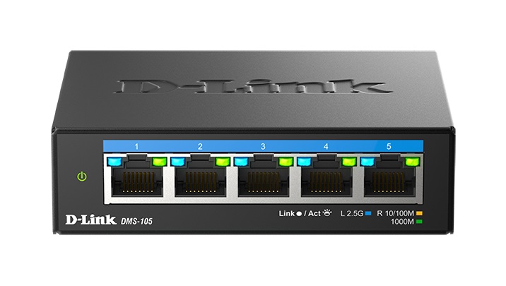 The DMS-105 switch uses auto-sensing ports, providing a small workgroup to flexibly connect Ethernet, Fast Ethernet, Gigabit and 2.5 Gigabit devices to create an integrated network. These ports detect the network speed via auto-negotiation allowing you to get the maximum speed possible for each device connected to your network.