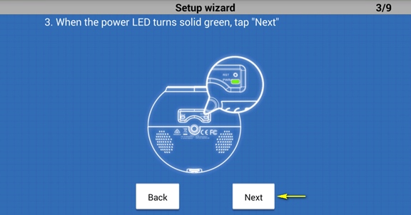 Шаг 7: Убедитесь, что индикатор питания устройства горит зеленым светом. Коснитесь значка Next (Далее).