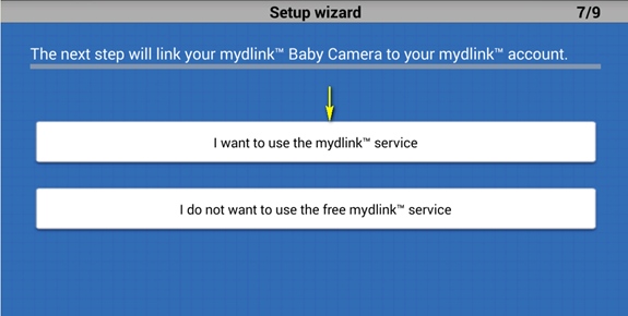 A. Если Вы хотите пользоваться сервисом mydlink, коснитесь I want to use the mydink™ service (Я хочу использовать сервис mydink™).