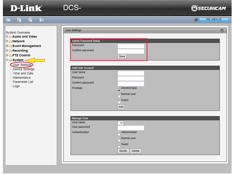 Вопрос: Как задать пароль администратора на камере DCS-3010?