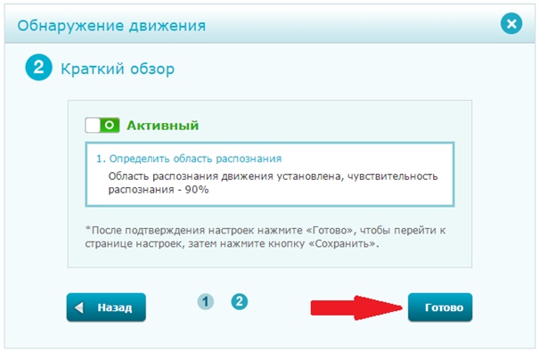 Шаг 6: Нажмите Готово, чтобы подтвердить настройки обнаружения движения.