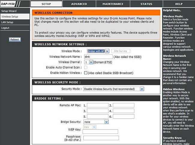 Bridge Security – Здесь следует выбрать шифрование, которое используется в беспроводной сети.