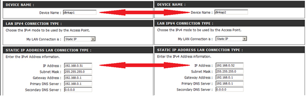 2. Настраиваем на обеих точках разные ip-адреса в разделе SETUP => LAN SETUP: