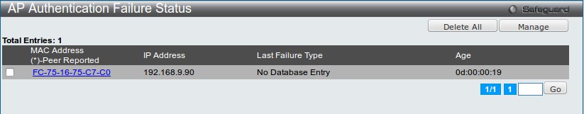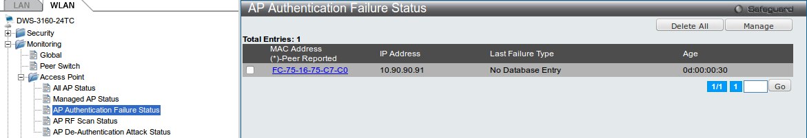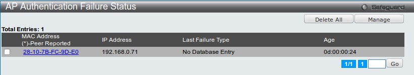 После этого точка появится в меню AP Authentication Failure Status: