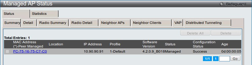 Посмотреть список управляемых точек можно перейдя в меню Monitoring → Access Point → Managed AP Status во вкладке WLAN.