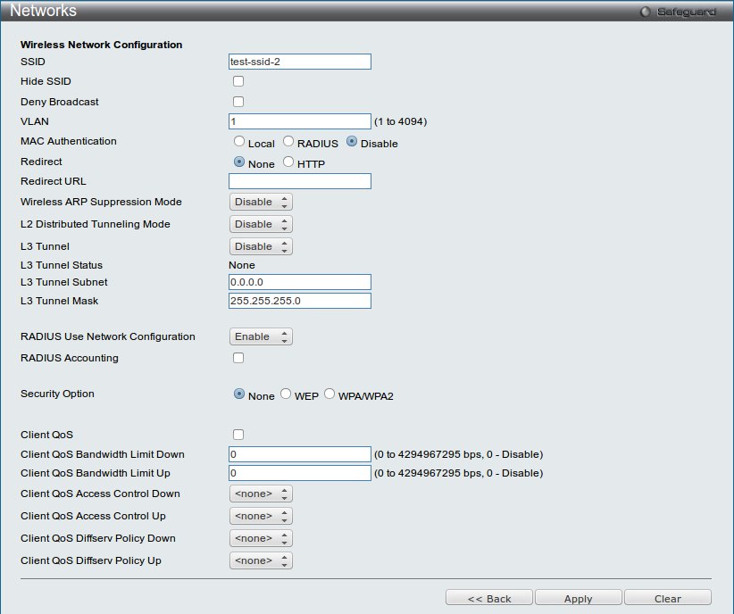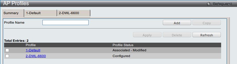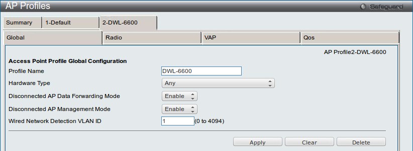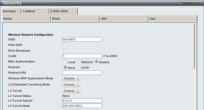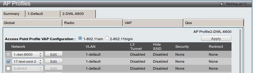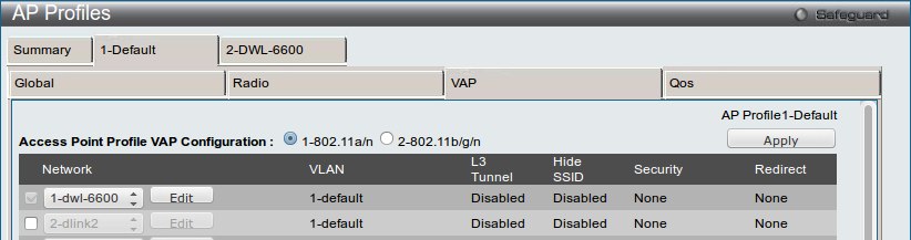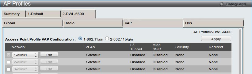 Созданная сеть будет применения только к профилю DWL-6600 (диапазон 802.11a/n). Параметры профиля Default остануться без изменений.