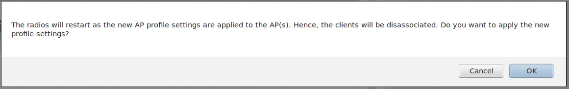 сообщающее, что применение нового профиля отключит беспроводных клиентов от тех точек, к которым применен этот профиль.
