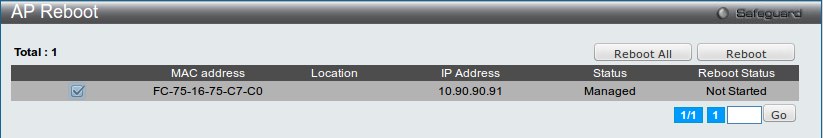 меню Administration → AP Management → AP Reboot
