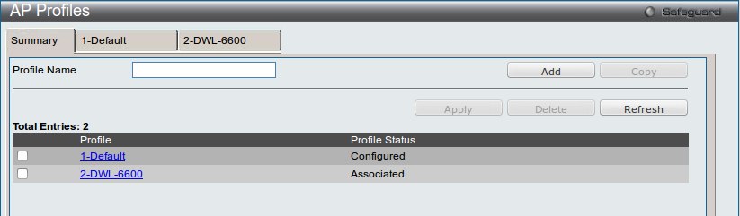 Примечание: профиль по умолчанию (Default) нельзя удалить впринципе, профили, созданные пользователем, нельзя удалить в том случае, если профиль ассоциирован с какой-либо точкой доступа.