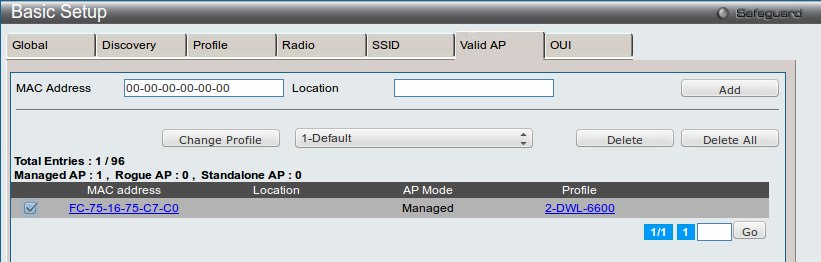 Для изменения профиля нужно перейти в меню Administration → Basic Setup → вкладка Valid AP.