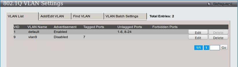 Добавляем VLAN 9 и жмем Apply.