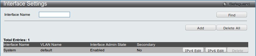 Вкладка LAN, меню Management → IP Interface → Interface Settings
