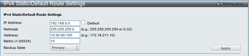 Вкладка LAN, меню L3 Features → IPv4 Static/Default Route Settings