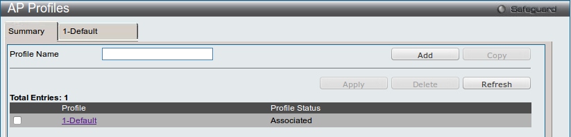 Выбираем вкладку, соответствующую профилю (Default в этом примере), далее VAP: