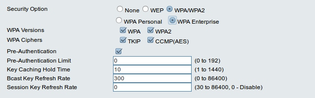 Здесь нажимаем Edit напротив нужного SSID и в появившемся меню в разделе Security Option WPA-Enterprise: