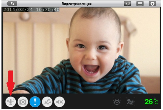 Шаг 3: Нажмите кнопку микрофона слева в нижней части окна Видеотрансляция. Теперь можно говорить в микрофон смартфона или планшета, а звук будет воспроизводиться в динамиках камеры.