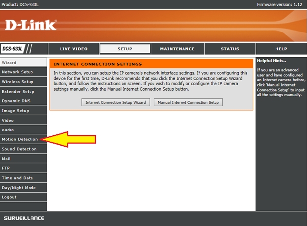 Шаг 4: Выберите Motion Detection (Обнаружение движения) слева в меню.