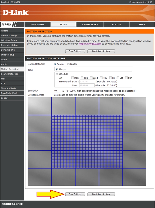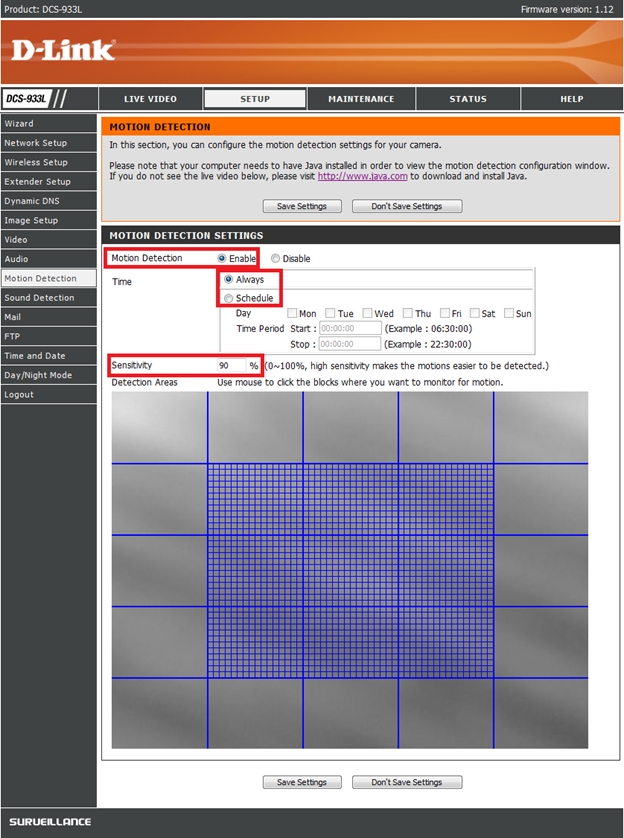 Вопрос: Как настроить обнаружение движения на камере DCS-933L?