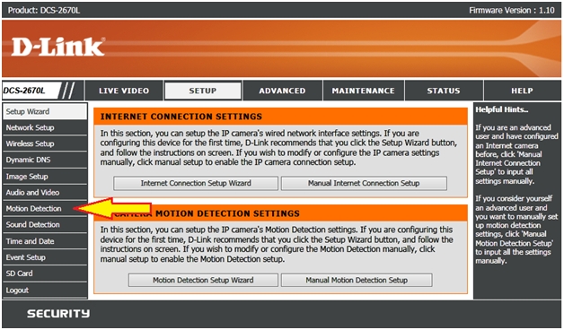 Шаг 4: Выберите Motion Detection (Обнаружение движения) слева в меню.