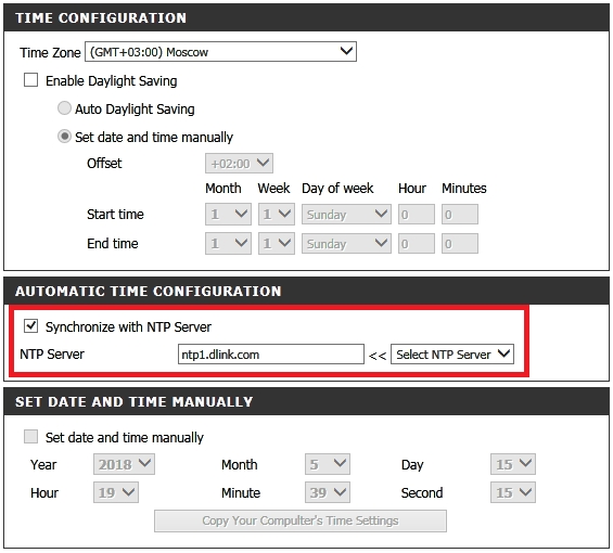 Вы можете выбрать синхронизацию с одним из предложенных NTP-серверов.