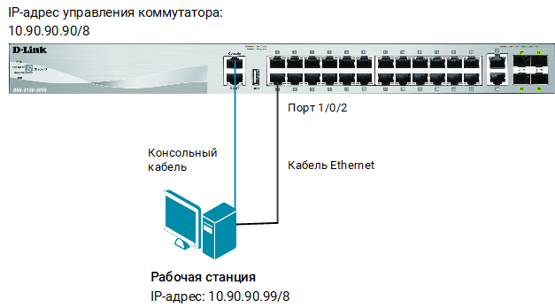 Для этой цели настроим доступ к CLI коммутатора по протоколу SSH с аутентификацией по паролю.