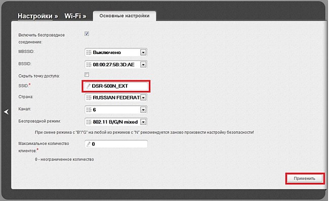 2. Настройка параметров wi-fi сети, которую вещает сама DAP-1155.