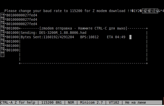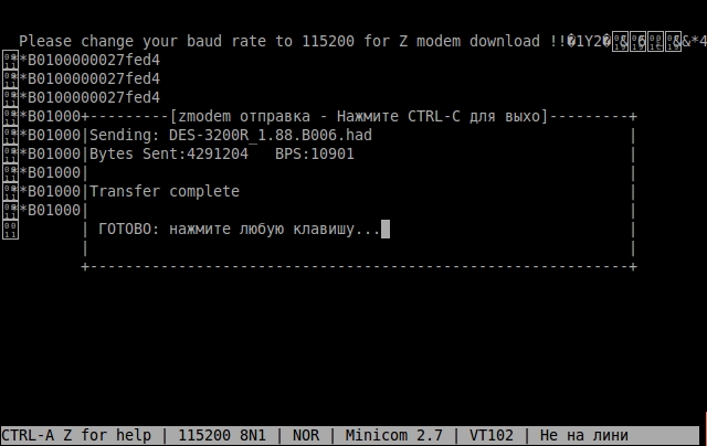 Soru: Как обновить прошивку на коммутаторе через Z-Modem